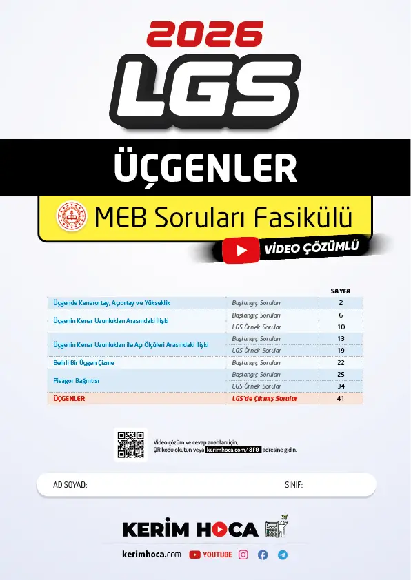 8. sınıf matematik Üçgenler konusuyla ilgili MEB tarafından yayımlanan soruları içeren güncel hepsi bir arada fasiküldür. Konuyla ilgili aşağıdaki soruları içermektedir: